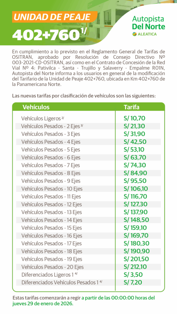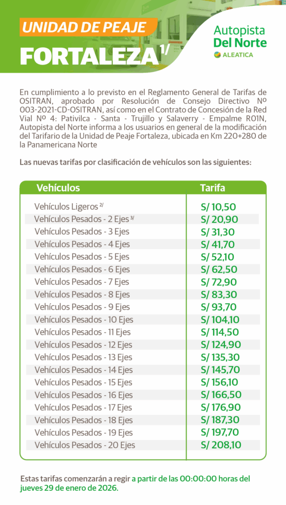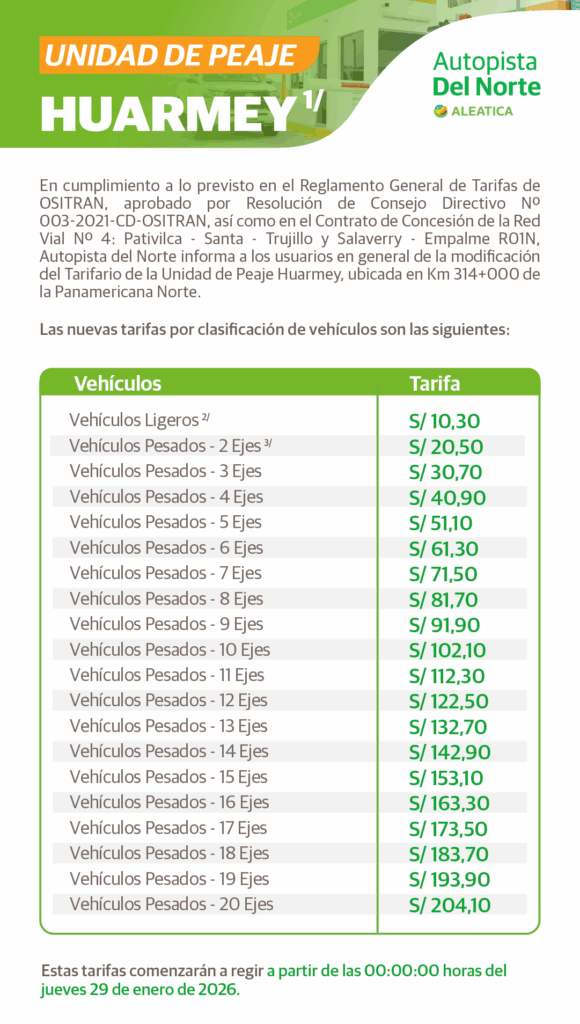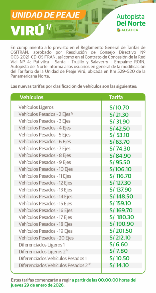 peaje viru 2023, la libertad autopista del norte